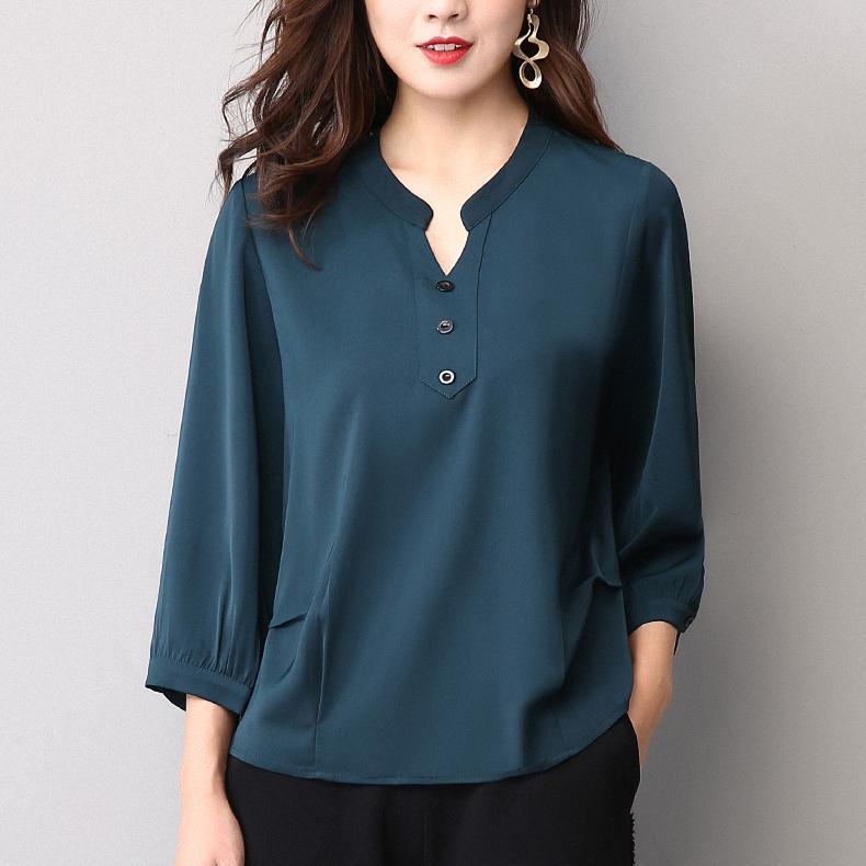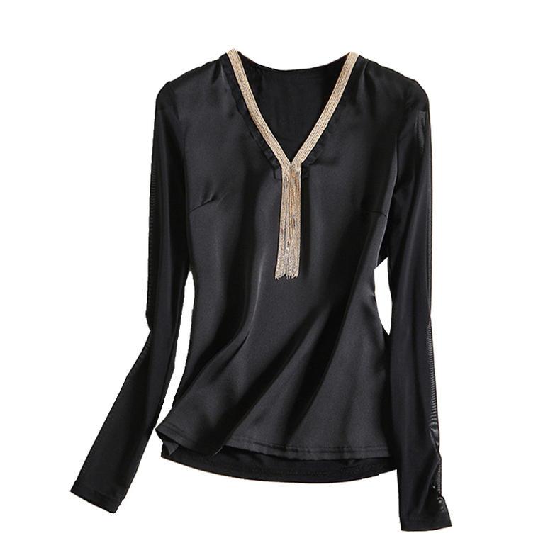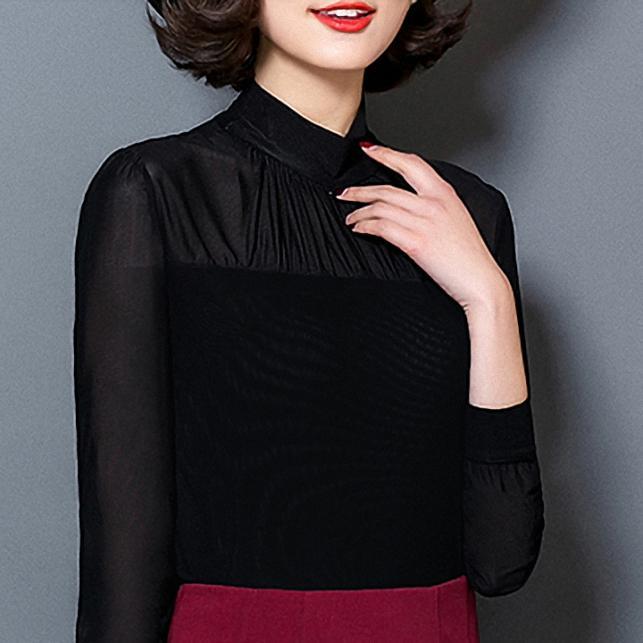 Western-style mesh shirt, skin-friendly and comfortable, simple and elegant, generous and noble design, simple small stand-up collar tailoring, creating Golden slimming ratio.