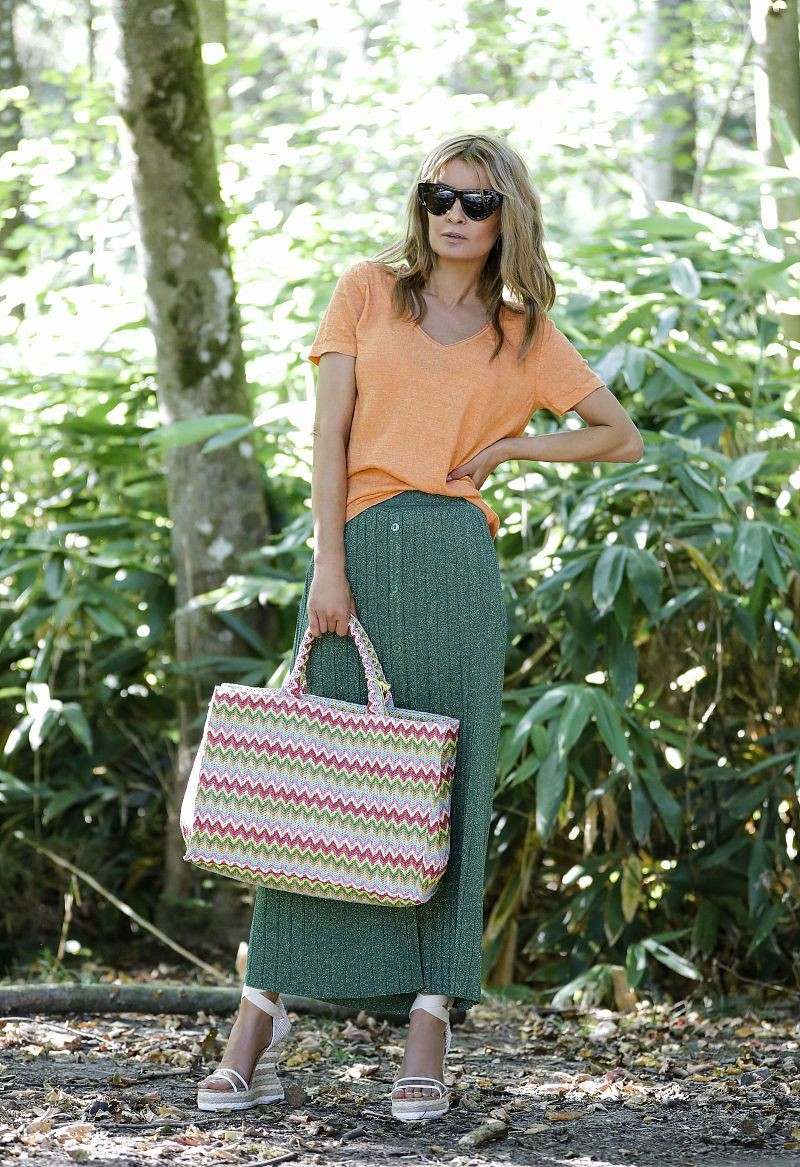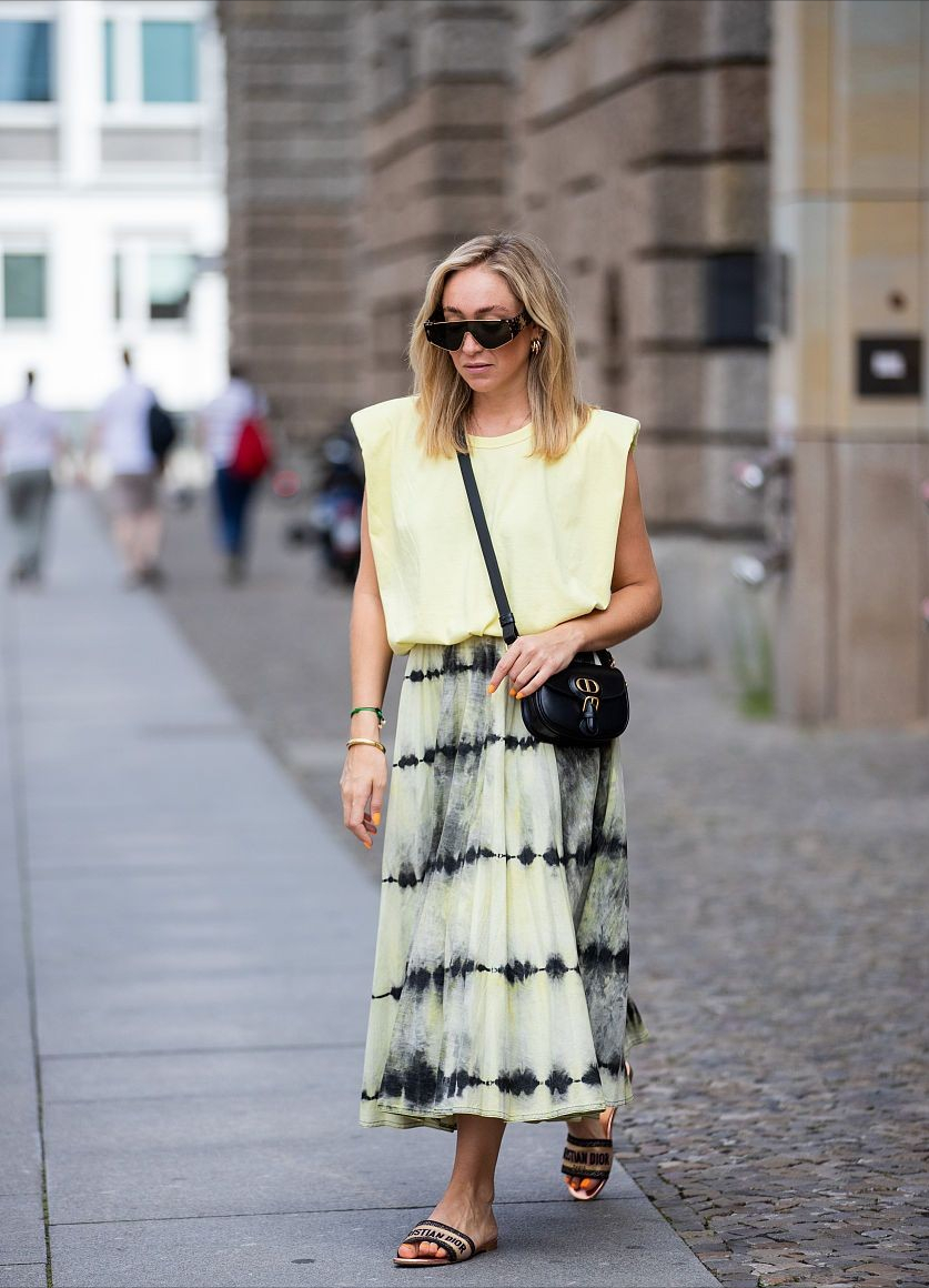 If it is paired with a long skirt, you can tuck half of the T-shirt in, or you can choose to wear it in a piled way, so that the connection between the T-shirt and the skirt creates a sense of stacking. This kind of outfit is casual, fashionable, and helps to look slimmer.