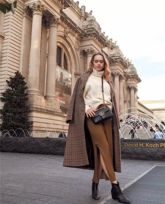 A sweater paired with a skirt is more suitable for women with a quieter personality. Pair a gauze skirt with a mid-length suit jacket. The neutral style is paired with a gentle style, and the effect is very good. A woolen midi skirt paired with a long plaid coat is very heavy and textured, with a slightly retro style, and is also very suitable for class reunions. Women who like a casual style can wear a mid-length fur coat, which is not only warm but also very fashionable. Pair it with black trousers and a red hat on your head, which is full of personality.