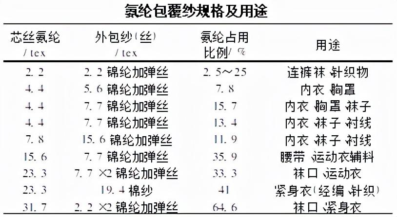 Spandex covered yarn is mainly used for fabrics that require high elasticity, and is partially used for woven fabrics. Fabrics woven with covered yarn are thicker and are especially suitable for weaving sports tights, such as swimming suits, ski suits, etc.