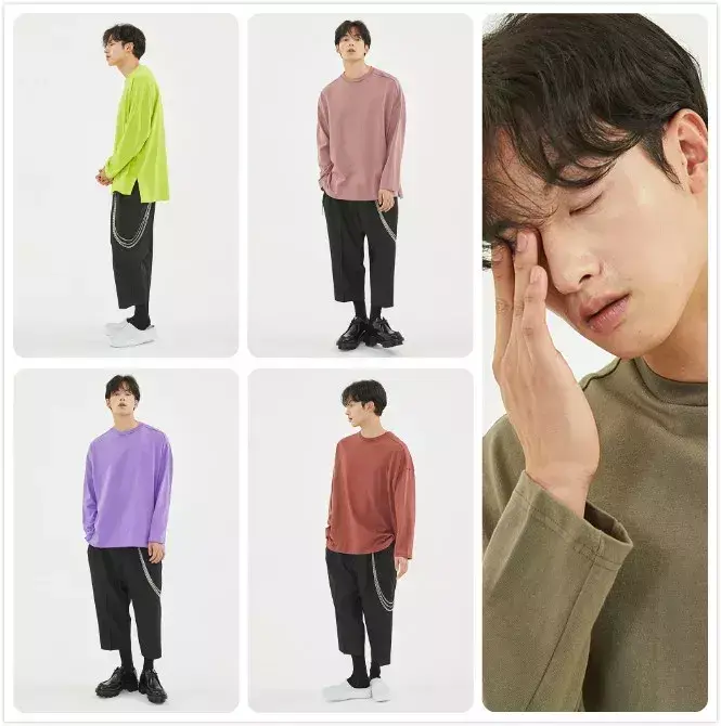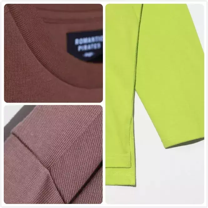 Reason for recommendation: Solid color long-sleeved T-shirt from Korean brand ROMANTIC PIRATES , using a dropped-shoulder tailoring design, with air vents on both sides of the hem, and the front and back lengths are short in front and long in back. There are eight color options (fluorescent green, orange, rose, purple, brick red, khaki, gray, dark blue), which are very rich and can meet the needs of different people.