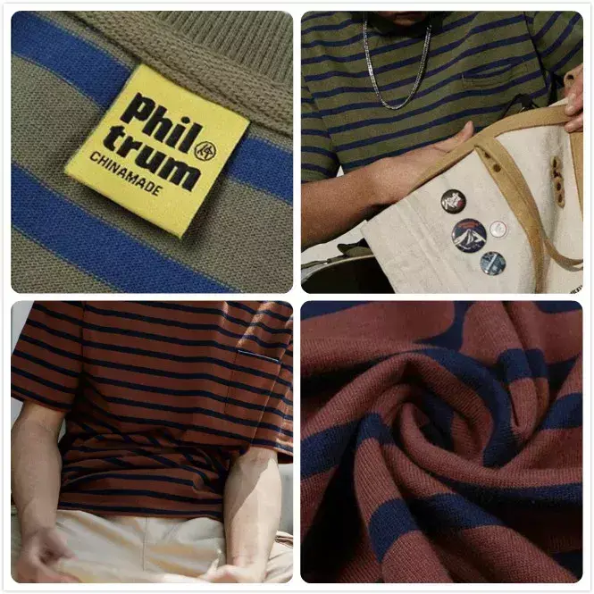 Reason for recommendation: This pinstripe short-sleeved T-shirt is made of Custom-woven and dyed 260 grams of 100% cotton fabric, which is soft, comfortable and thick enough. The high-quality yarn has slight elasticity when woven. The colors are low-key dark green with navy blue, and stable coffee color with navy blue. They are all simple and attractive colors, suitable for daily use.