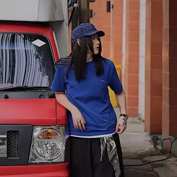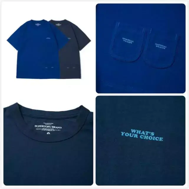 Reason for recommendation: Pocket T-shirts we usually see, pocket location It is on the left chest, and this pocket T-shirt has the pocket on the upper left side of the hem, and is composed of two small pockets, which is indeed interesting enough. In terms of color matching, there are two options: electric blue and navy blue.