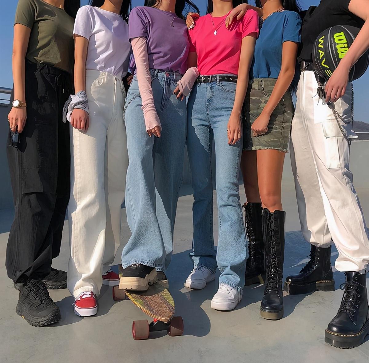 Jeans are really universal pants. No matter what kind of clothing they are paired with, they have their own unique feel. When paired with a solid color T , age-reducing and fresh, and by the way, whether it is a solid color T-shirt or a patterned T-shirt, it will not look bad or weird, and you can match it with anything you want to match the shoes. People of any age can wear it this way.