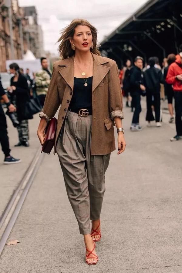 Look at the casual style T-shirt and the more formal suit pants. There is no sense of inconsistency. , but adds a sense of uninhibitedness. This combination weakens the formality of the suit pants, but makes the whole person look comfortable and comfortable. However, suit pants are generally too loose, so girls with short stature should try to avoid them, and girls with fat lower bodies should try to avoid them.
