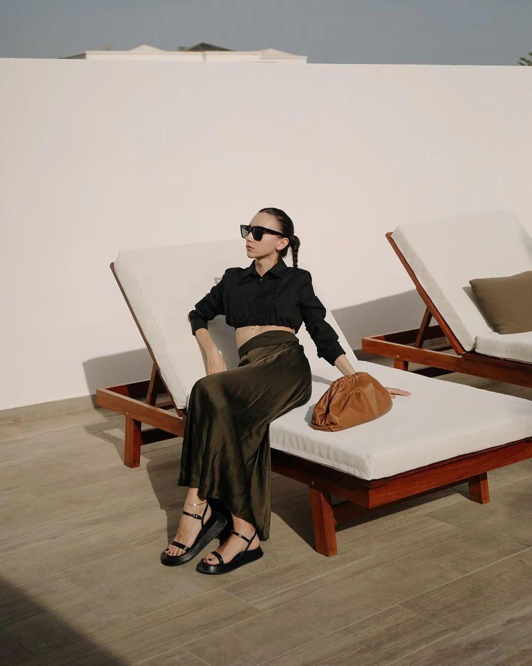 Another example is a satin shirt skirt, which is a little more formal, but extremely elegant, and is very suitable for pairing with pointed-toe high heels. ▼