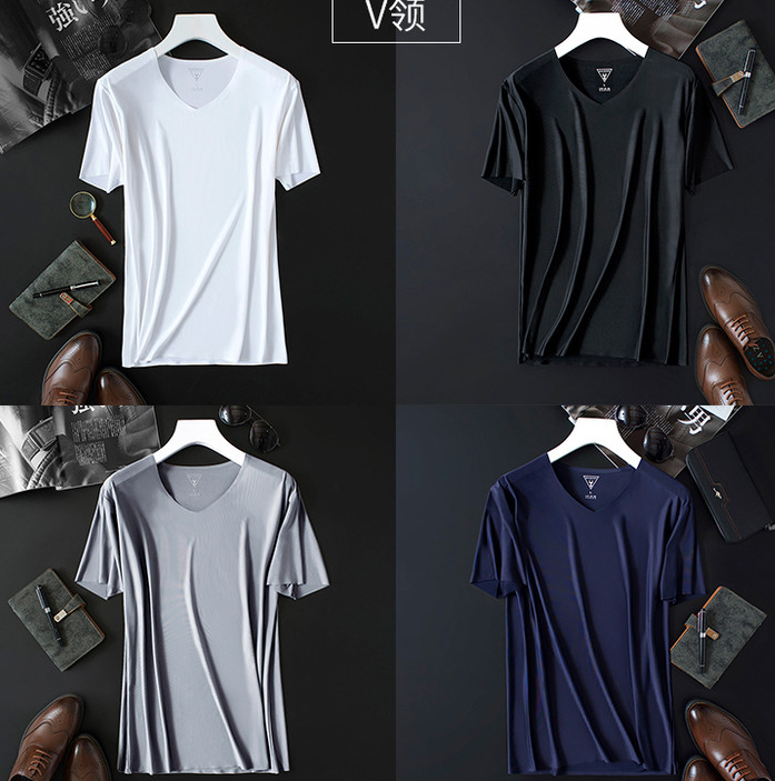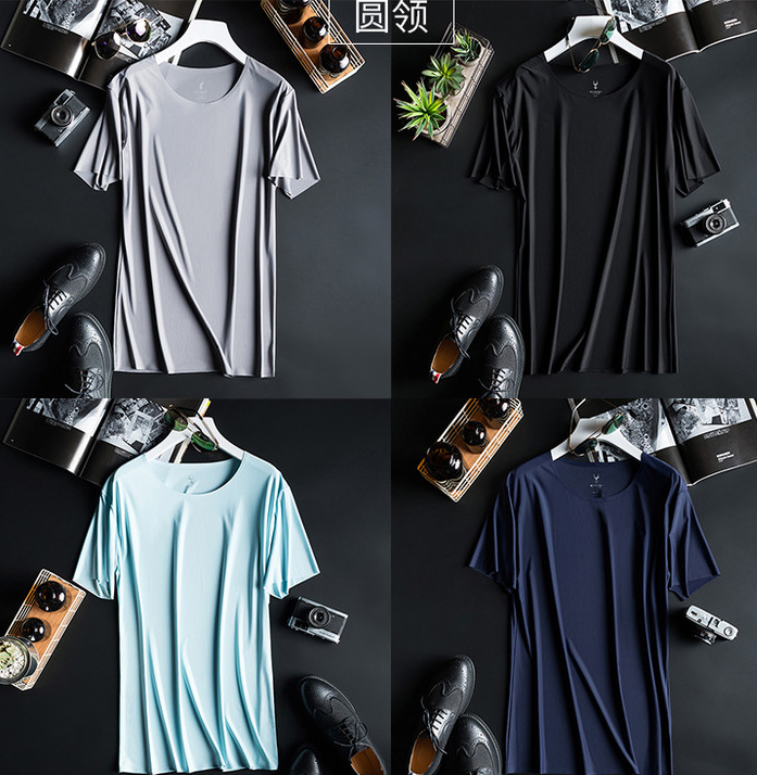 There are quite a few styles of this goat milk silk T-shirt. Divided into round neck and V-neck.