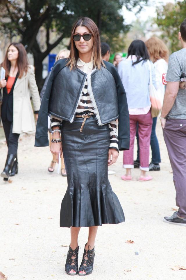 Tie in the hem of the T-shirt and add a high waistline to make your legs look longer, but such a skirt can easily show off your belly, especially if you have a small belly. It is not recommended for girls to wear this.