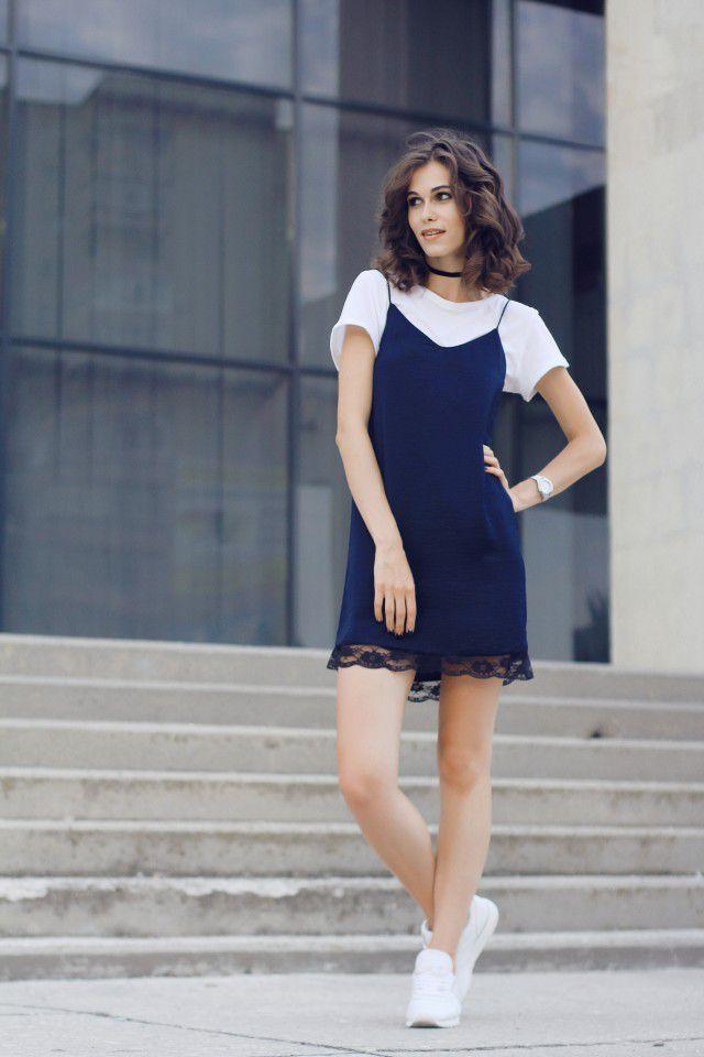 A suspender dress + T-shirt is no longer a trendy way to wear it. It has not become too popular in the past two years. This matching method is simple and tolerant. At the same time, it can bring a strong sense of visual hierarchy, which is a matching style that most girls like.
