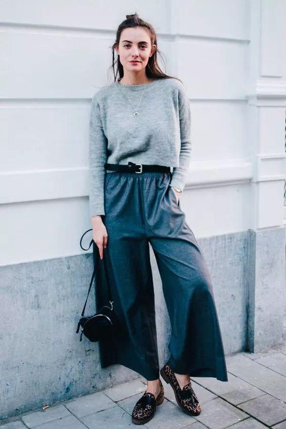 Girls who are not confident about their height may find it difficult to control wide-leg pants. In fact, as long as you choose the right style , petite girls can still wear long legs. When wearing a sweatshirt + wide-leg pants, it is best to choose nine-point high-waisted wide-leg pants with the hem exposing the ankles. Pair them with pumps. This will not only visually extend the leg lines and make people look taller, but also It can also make the overall look look lighter and more capable, instantly transforming you into a fashionista.