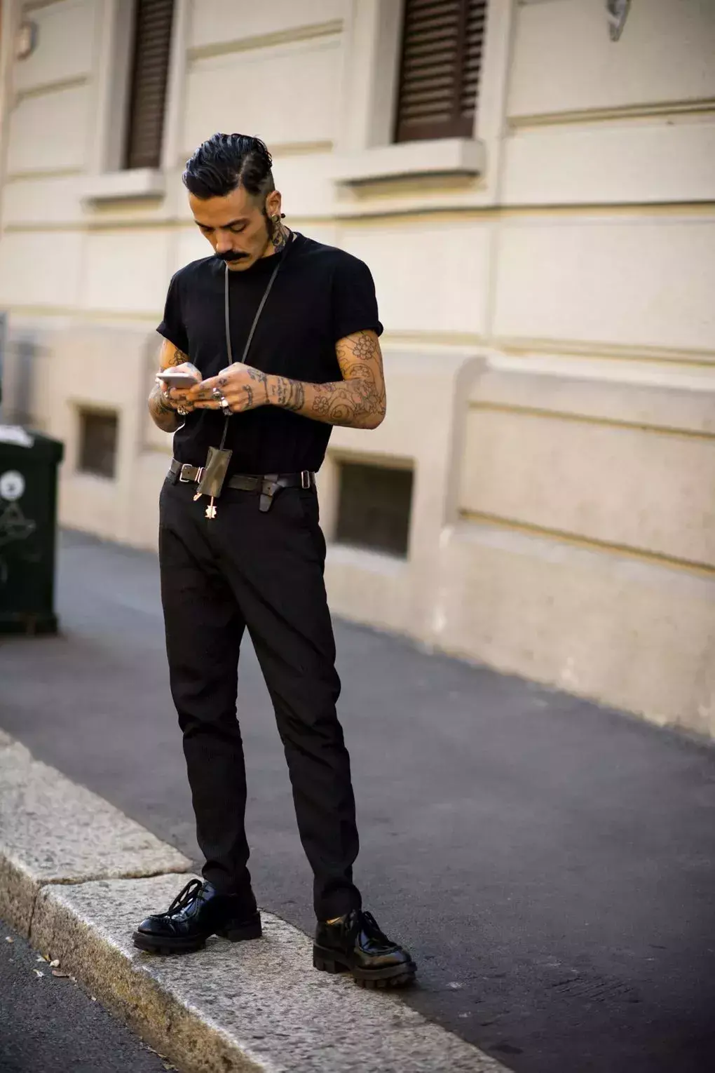 In fact, you can change it after a long time. Do the opposite, wear a black T-shirt and white pants. A black top looks slimming, while white pants are elegant and can also make your lower body “expand” (lengthen). Of course, this is not suitable for men with thick legs and a strong lower body.