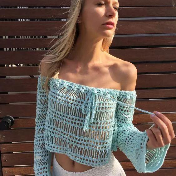 Knitted fabric is a fabric that sounds very hot, but after adding the word “hollow”, it instantly becomes much cooler. Hollow knitted fabric clothing is more common in women’s styles, especially hollow knitted fabric tops, paired with fashionable bottoming vests inside, which are not only cool and breathable, but also make the look extra sexy and feminine.