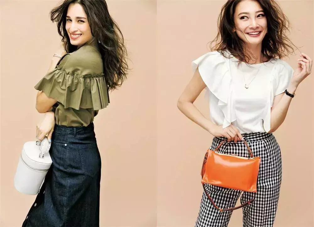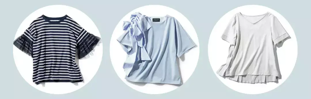 Using the lotus leaf sleeves well can also make the T-shirt show a clean and feminine look. The patchwork ruffled T-shirt can help cover up the excess fat on the arms. Pair it with a beige skirt for an intellectual and refreshing look.