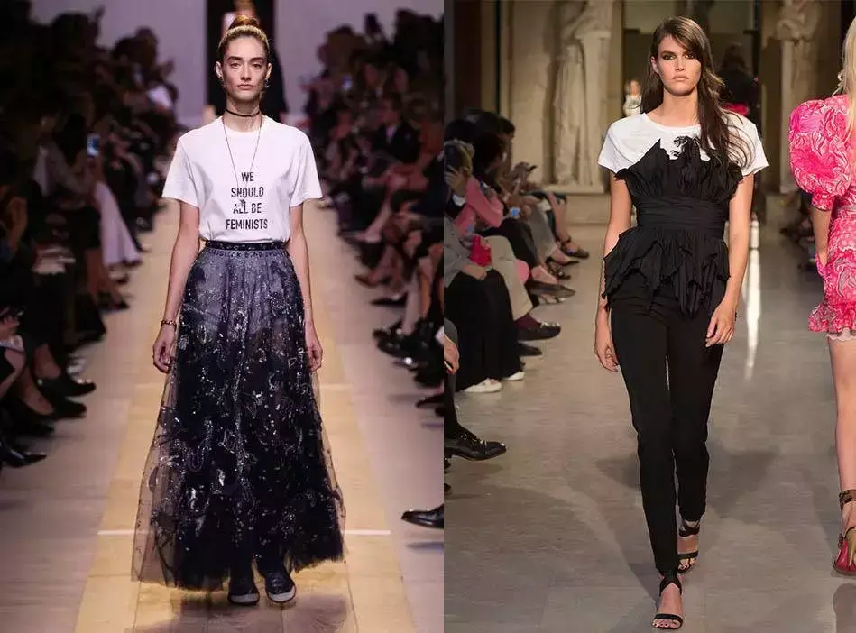 At the same time, the use of crisp fabrics is also an indispensable element of feminine T-shirts. The stiff material helps maintain the shape of decorative elements such as ruffles and bows, and also neutralizes sweetness.