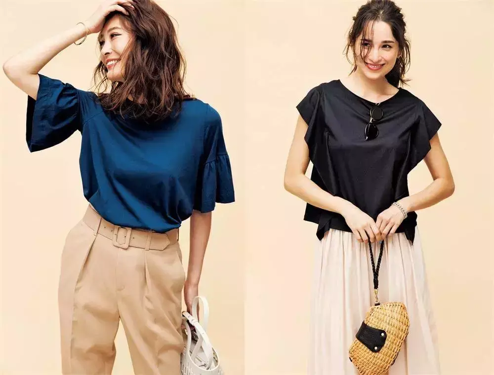 Dark T-shirts are elegant and elegant. Matching is loved by many people. If you want to be fashionable and beautiful, it depends on the tailoring. The bat sleeve-style ruffled cuffs are fashionable and modern, and the loose fit gives a refreshing and simple feel.