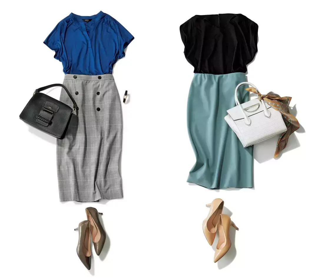 Choosing a tight skirt for a blouse-style T-shirt is also a must. The skirt should be high-waisted and lengthen to the calf, making it effortless to create a sophisticated and sexy feminine look.