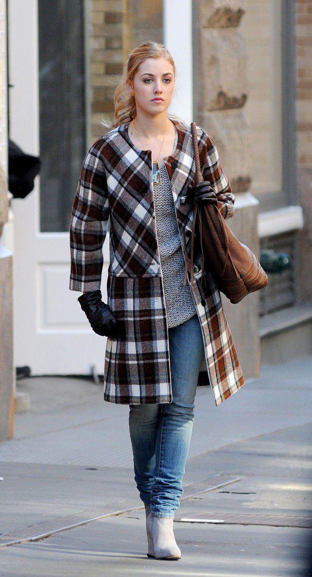 Pair a slightly loose sweater with slim-fitting bottoms and a coat outside to cover your body and look slimmer.