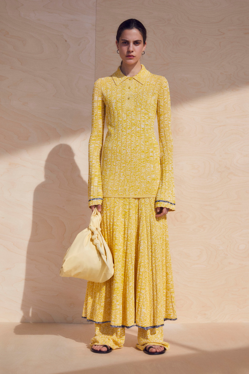 The polar fleece fabric is also comfortable and warm, and the design of the hip skirt also creates a bit of maturity and sexiness. Wear a pair of yellow high heels, which combine with the color of the hip-hugging skirt to create a unique sense of fashion.