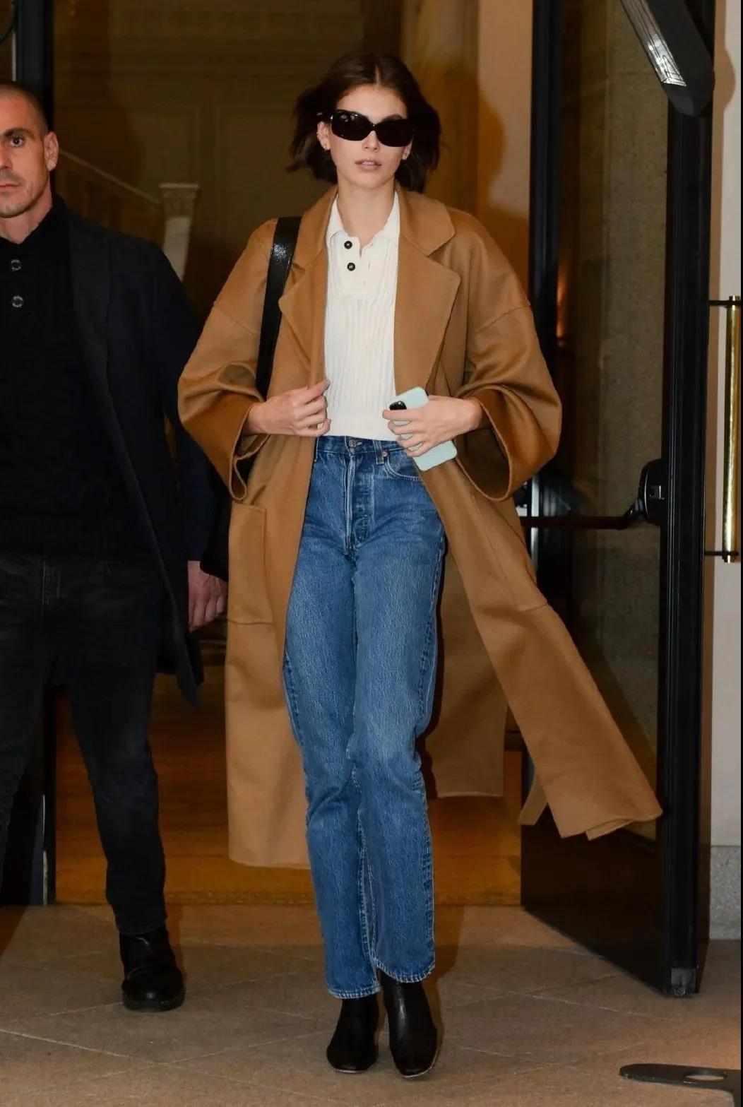 The lower body is simply paired with a pair of dark casual jeans and a polo shirt, which is casual and versatile.
