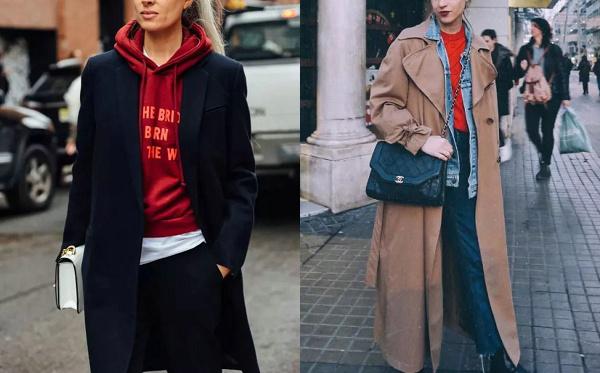 After taking off the heavy winter coat, what comes next is the domineering coat. When pairing a red sweatshirt with a long coat, you must pay attention to the balance of colors. The coat must be dark, so that the overall look will be more attractive and not boring.