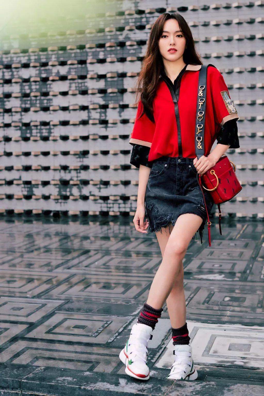 If you want to be cooler, just follow Tang Yan’s example and pair a fringed skirt with a loose campus-style Polo shirt. Use the sexy nature of the fringes to offset the childishness of the campus-style Polo shirt. , add socks and retro sneakers to add a sporty feel. She is definitely the energetic school beauty herself.