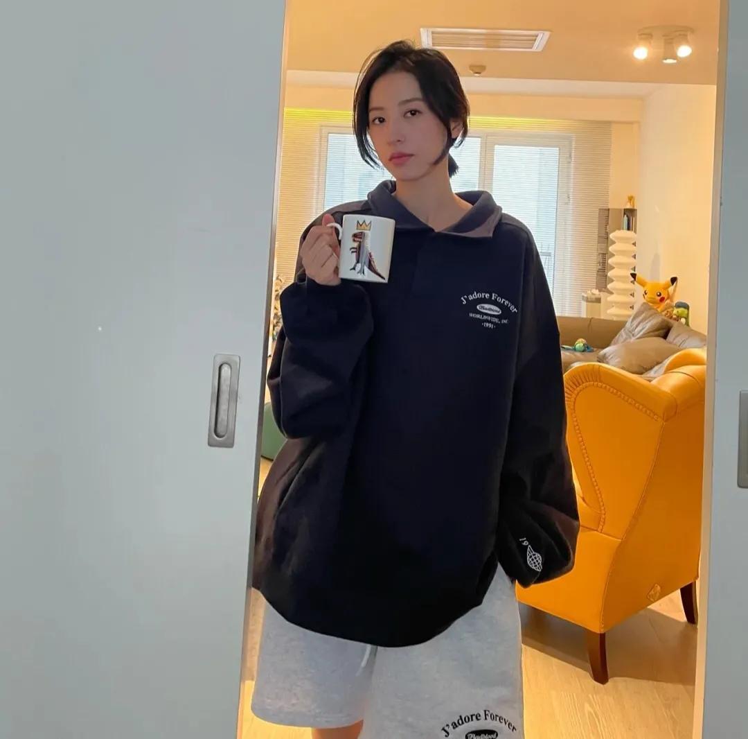 This version The stylish sweatshirt comes with a high waistline, which is also very friendly to smaller girls. It looks taller and slimmer. When the weather is cooler, it can also look good with a jacket