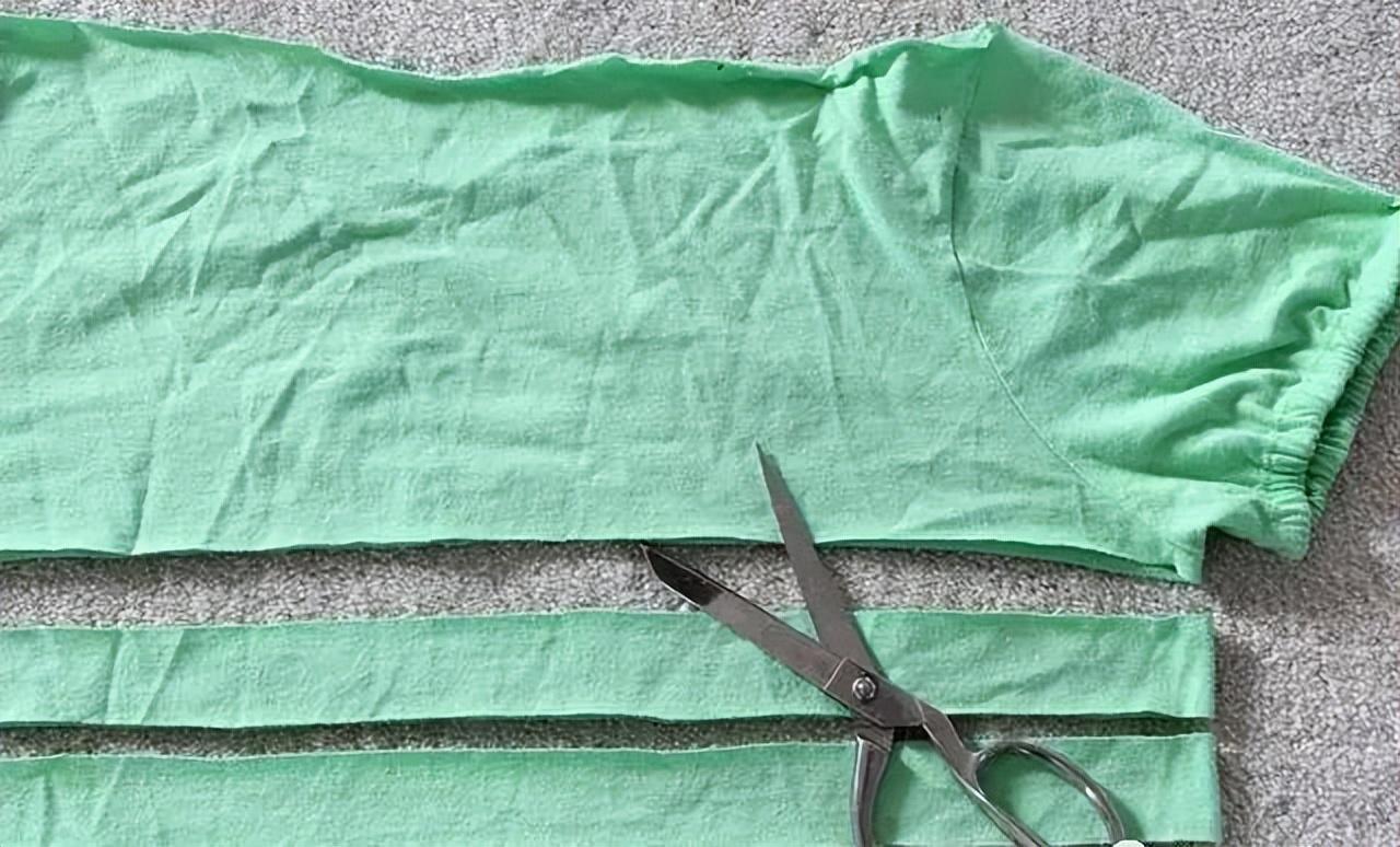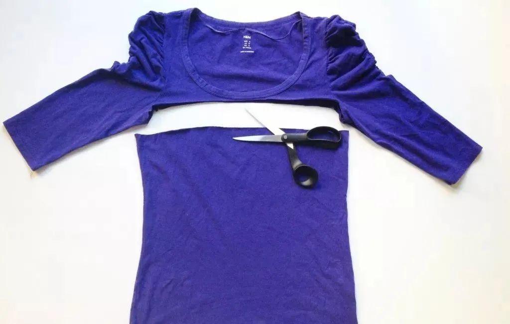 Step 1: Cut off the collar and sleeves of the T-shirt. The size of the neckline determines the size of the bag opening.
