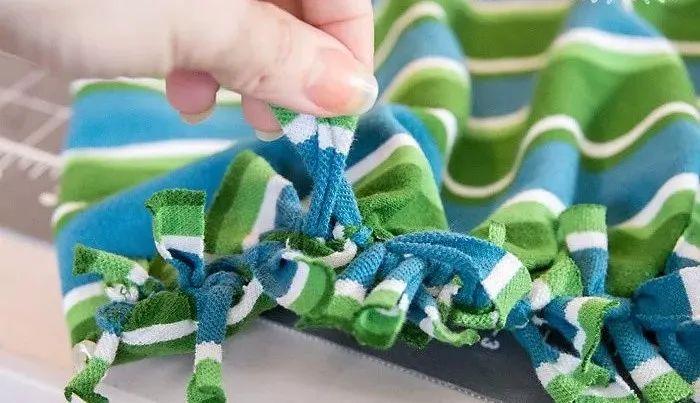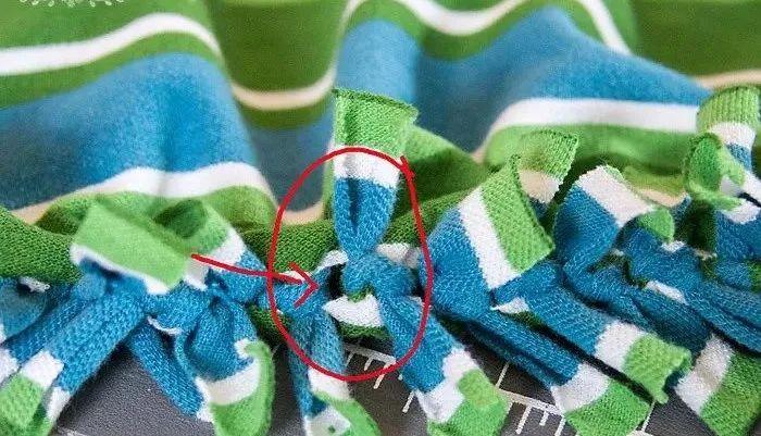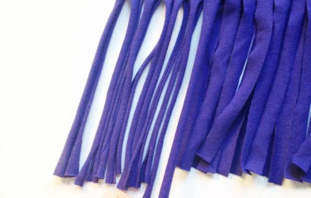 Step 2: Cut the lower part of the fabric into thin fringed strips, about 20cm in length.
