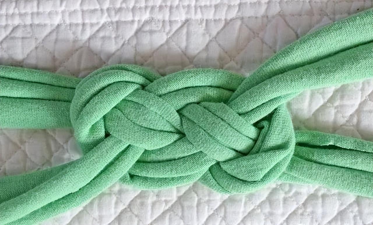 6. Gently and slowly pull each end until a neat knot is formed and there is loose fabric on each side of the knot strip.