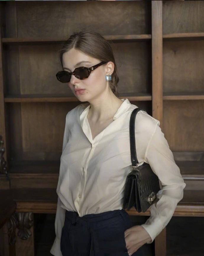Pure white casual shirt + classic black create a cool urban woman. Even the handsome guys on the street can’t compare to your sunglasses. Change your armpit bag to domineering black, and even the pants are involved. It can be used in any shot. Adds a buff to your aura.
